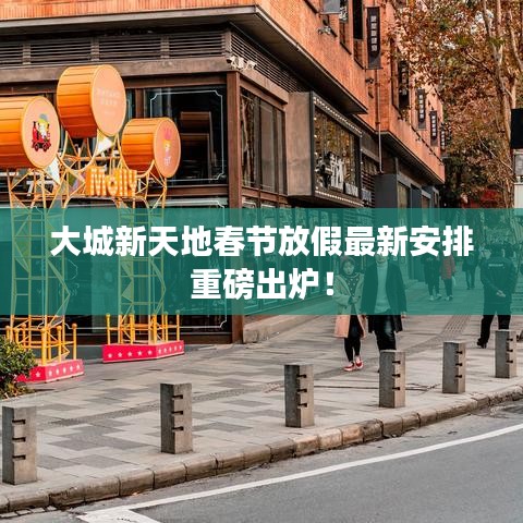 隨著春節(jié)的臨近,人們開(kāi)始關(guān)注各大企業(yè)和機(jī)構(gòu)的放假安排,關(guān)于“大城新天地春節(jié)放假嗎”的問(wèn)題備受關(guān)注,本文將對(duì)大城新天地最新的春節(jié)放假安排進(jìn)行詳細(xì)介紹,為廣大市民提供最新的消息。